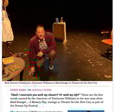 Kind Stranger is a poignant one-man show that delves into the life and memories of Tennessee Williams, showcasing his wit, honesty, and the essence of his artistic journey.